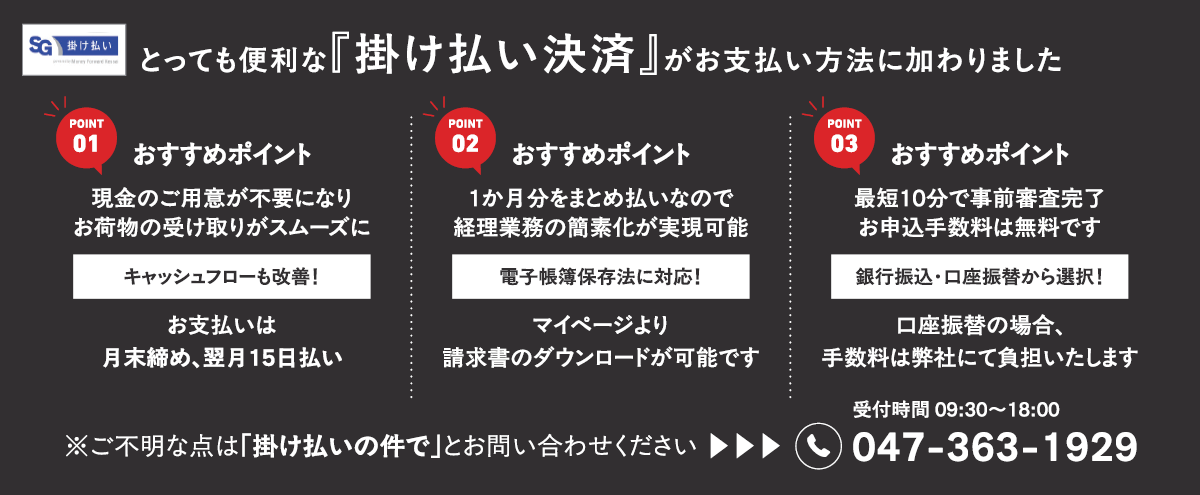 掛け払い決済がお支払い方法に加わりました