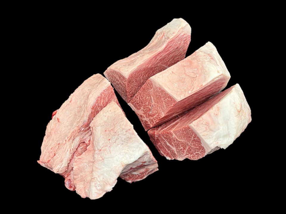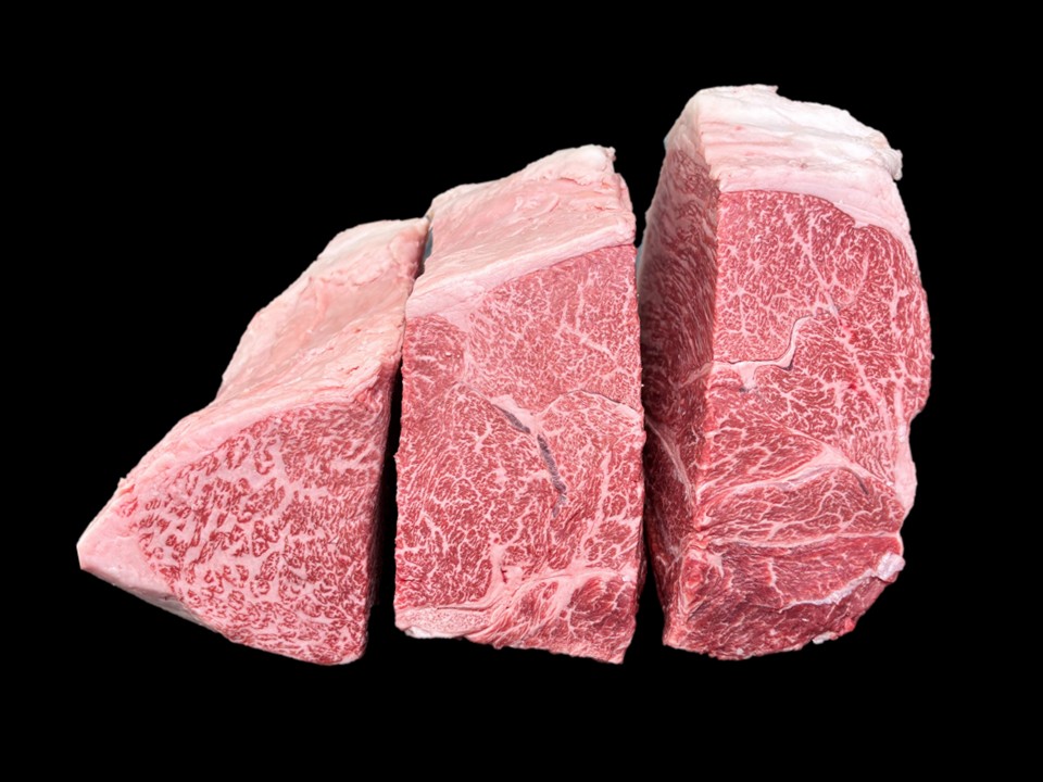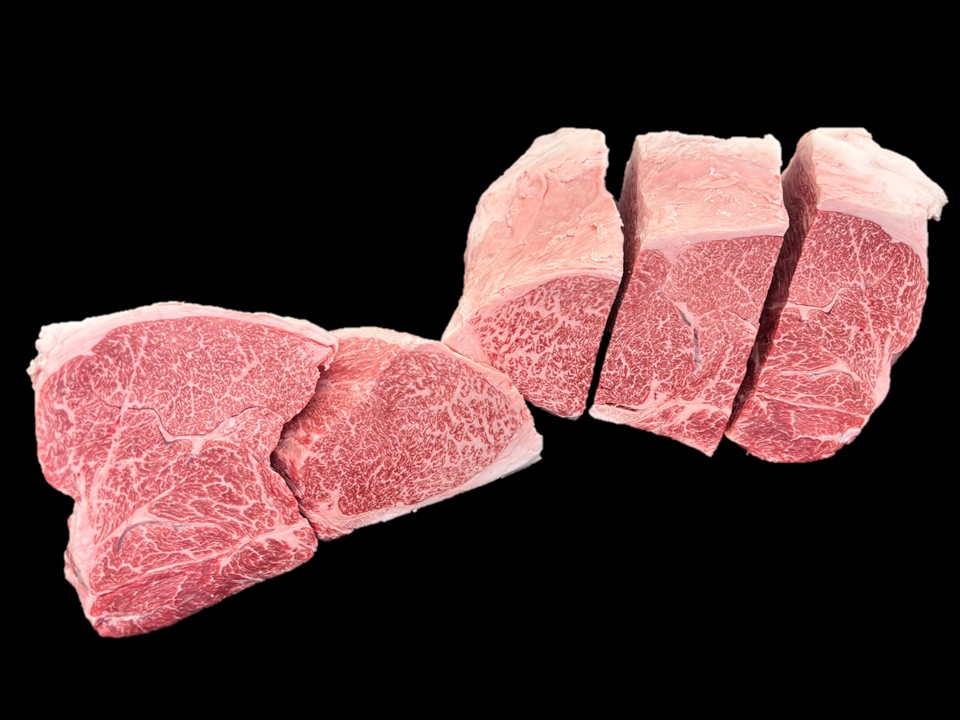 ■胴切りでカット後、サーロイン側は目に沿って3等分、イチボ側はランボソを外した2分割となり、合計5パックでのお届けになります。