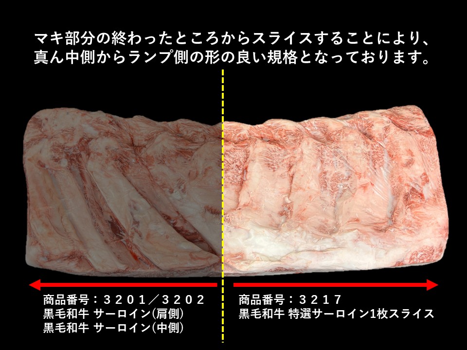 ■”あえて”マキ部分の終わったところからスライスすることにより、真ん中側からランプ側の形の良い規格となっております。