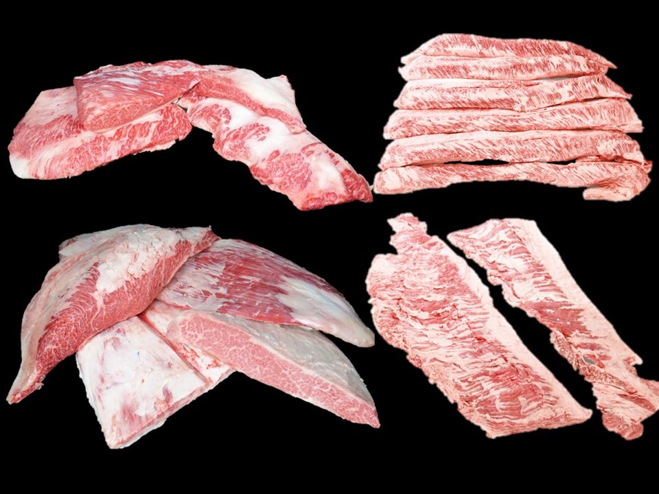 ■ボンショー・タテバラ・カイノミ・ササミ・インサイド・リブフィンガーの主要パーツに「カブリやヨコメを整形した人気カルビ材」を加えた7点セットになります。